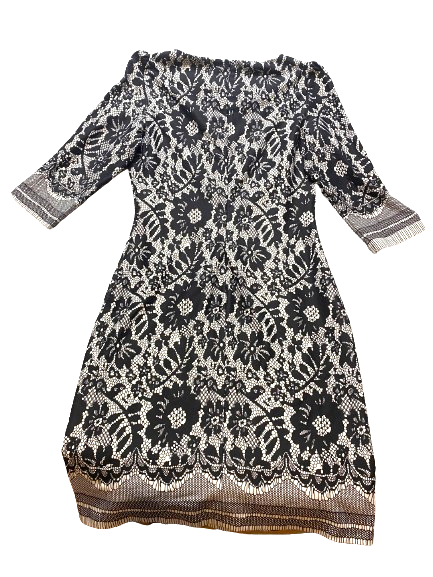 Lavina Dress Womens 44 Black White Lace Lined Flower Boho Bodycon Shift Ladies