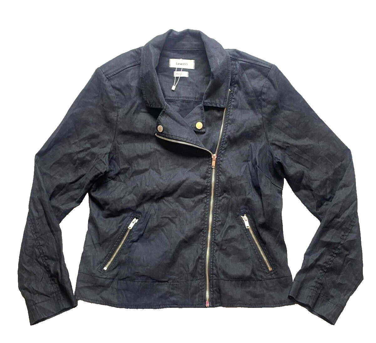 Level 99 Jacket Womens Large Black Zip Up Motorcycle Moto Biker Linen Spandex