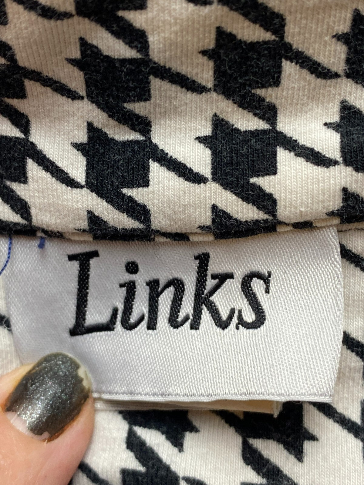 Links Jacket Womens 3X Black Houndstooth Contrast Full Zip Collared Plus Ladies