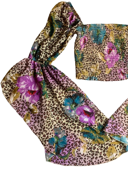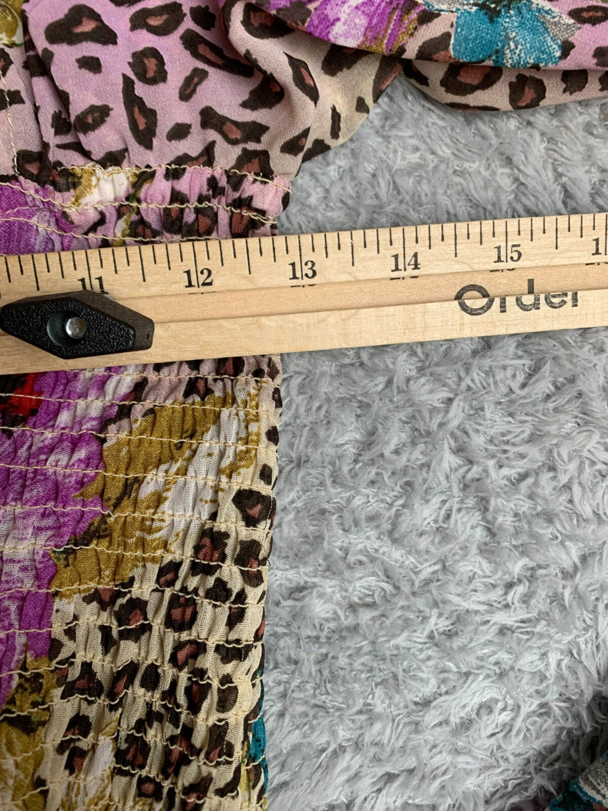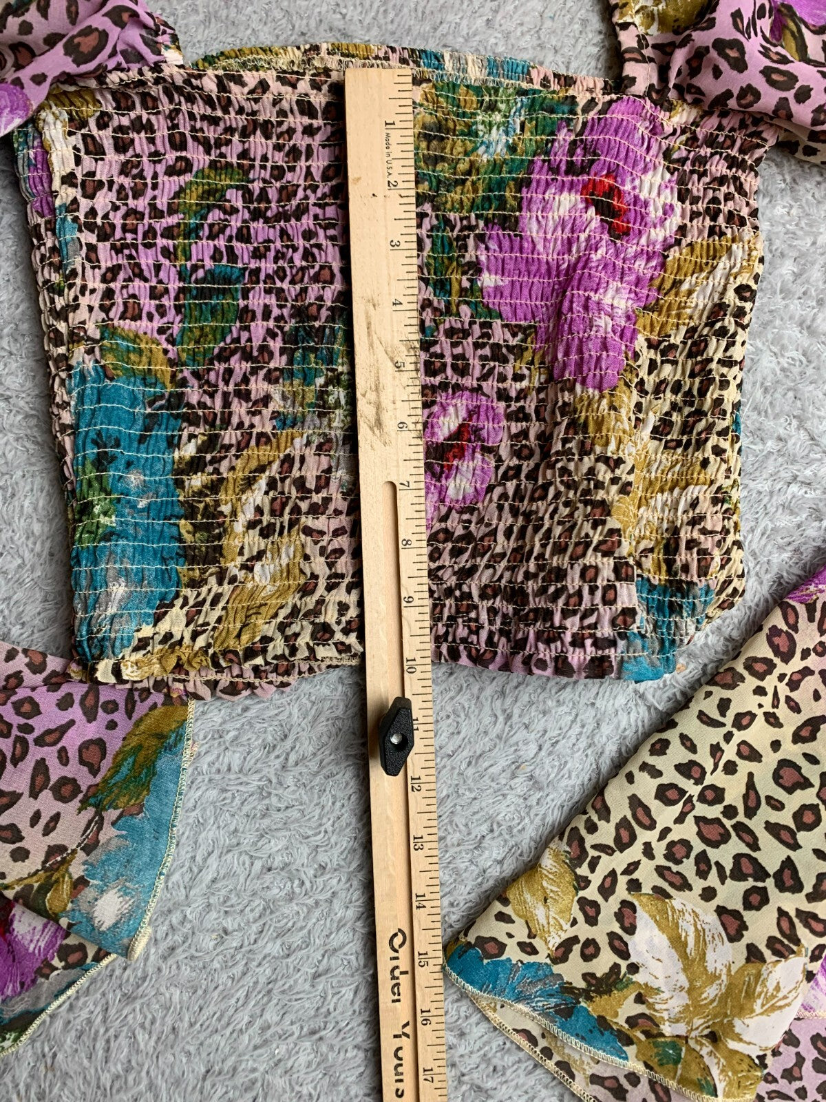 Live 4 Truth Shirt Womens Small Brown Leopard AOP Flower Flare Sleeve Boho Crop