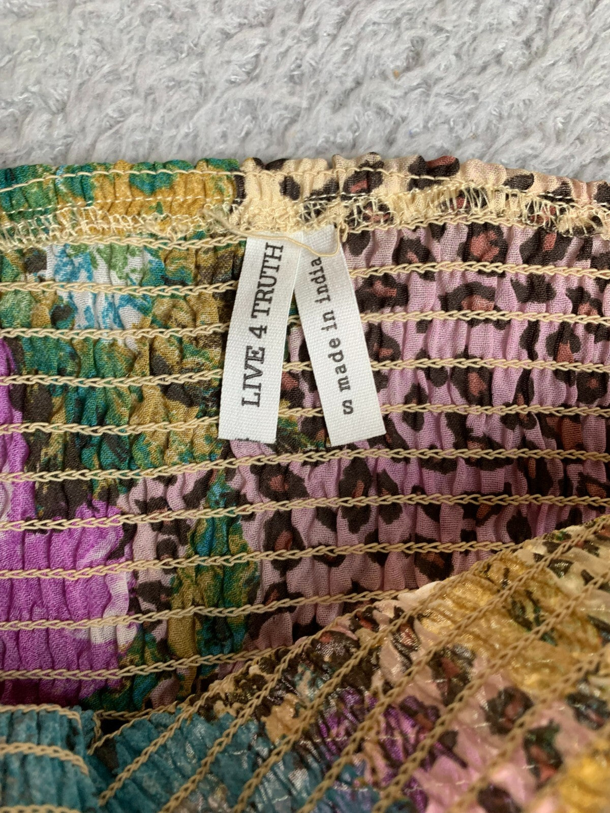 Live 4 Truth Shirt Womens Small Brown Leopard AOP Flower Flare Sleeve Boho Crop