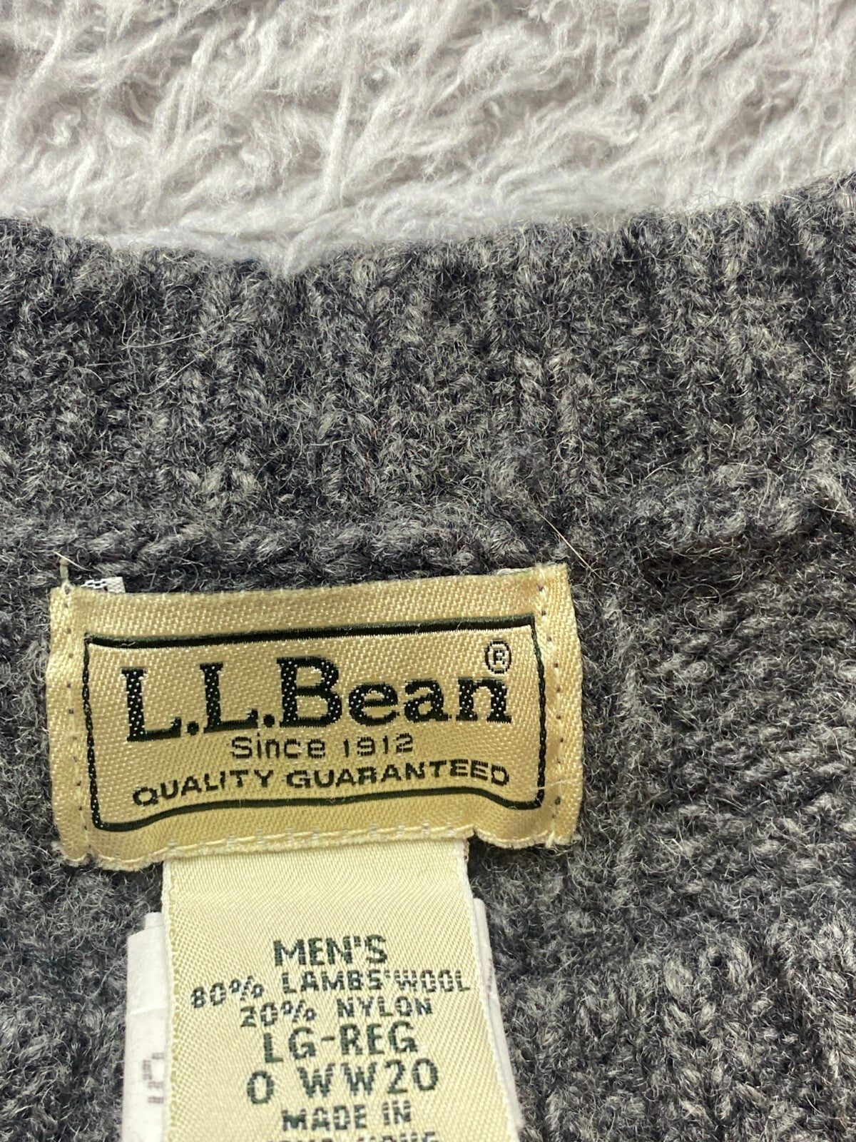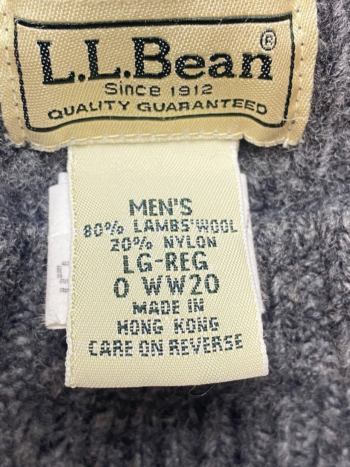 LL Bean Sweater Adult Large Gray Cable Knit Lambs Wool Nylon Outerwear Mens