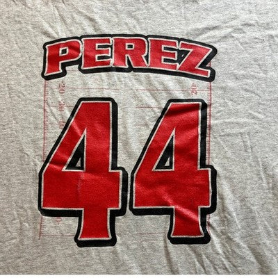 Unleash your team spirit with this vintage-inspired Louisville Cardinals t-shirt, a bold statement piece for any fan! Featuring the iconic Cardinals mascot gripping a football and the name Perez with the number 44 on the back, this shirt is a perfect tribute to team pride. The gray hue provides a versatile backdrop for the vibrant graphics, making it easy to pair with anything in your wardrobe. It's a comfortable and spirited way to show your support for the Cardinals, whether you are heading to a tailgate party, watching the game with friends, or just want to show your team pride.