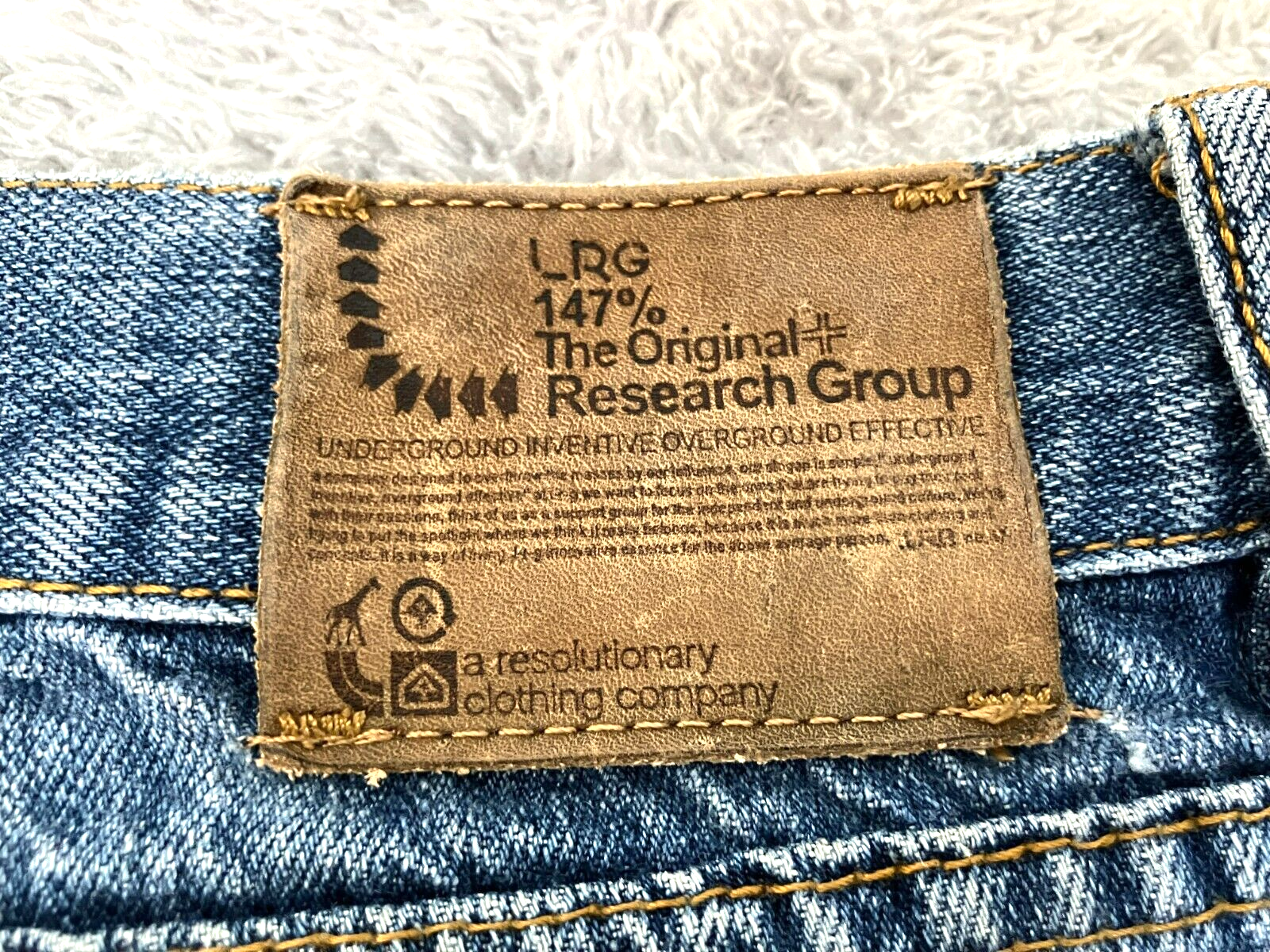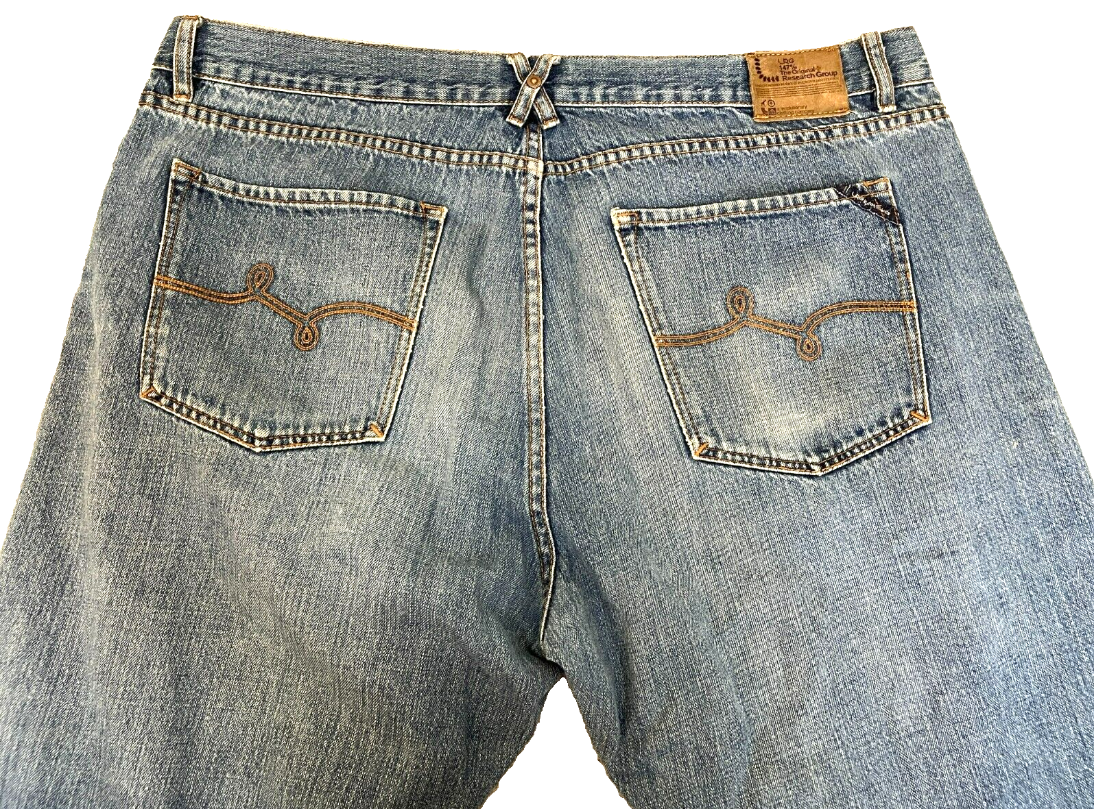 LRG LR Geans Jeans Adult 42x31.5 Whiskered Straight Leg Outdoor Baggy Denim Mens