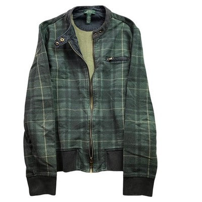 Keywords: LRL Lauren Jeans Co., Ralph Lauren, Bomber Jacket, Plaid Jacket, Men's Jacket, Medium, Casual Jacket, Fall Fashion, Olive Green, Tan Plaid, Retro Style, Zip Up Jacket, Cotton Jacket
