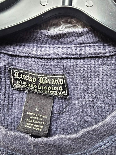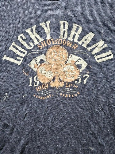 Lucky Brand Shirt Women Large Navy Waffle Knit Thermal Showdown Card Lightweight