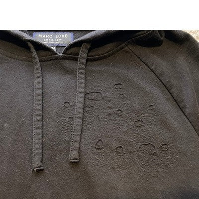 Keywords: Marc Ecko, Cut & Sew, Hoodie, Short Sleeve, Black, Mens, Medium, Distressed, Urban, Streetwear, Casual, Zipper Detail, Modern, Comfortable