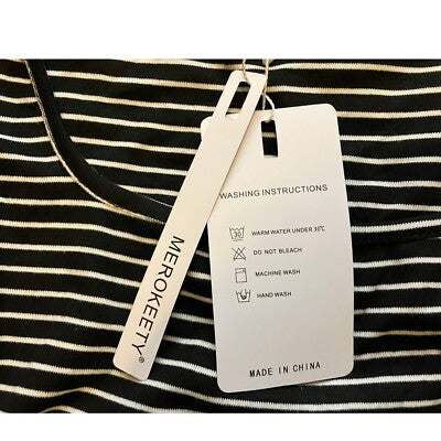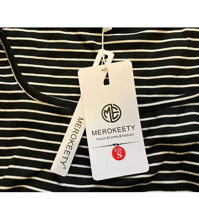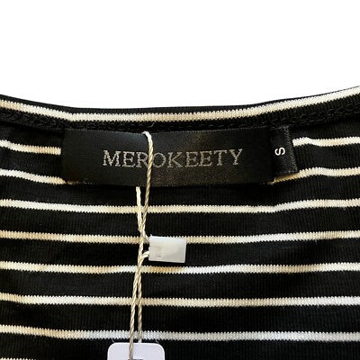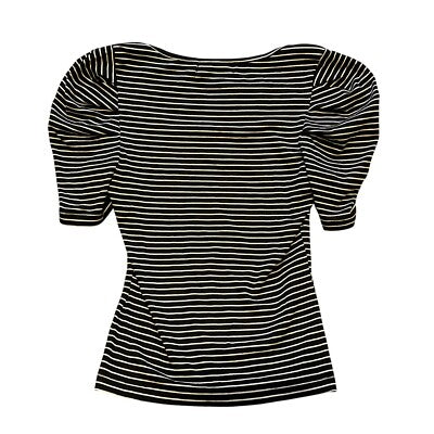Keywords: striped top, puff sleeve top, square neck top, fitted tee, black and white top, womens top, casual top, fashion top, stylish top, merokeety, short sleeve top, ribbed top, size small, summer top, trendy top
