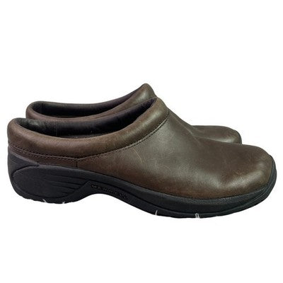 Merrell Clogs Women 6 Brown Leather Mules Shoes Slip On Comfort Everyday