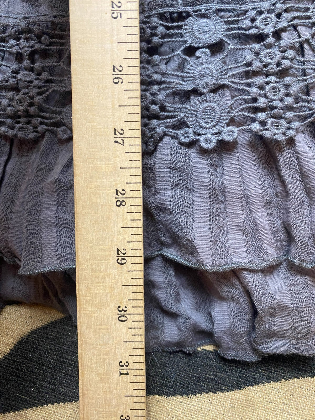 Monoreno Dress Womens Medium Gray Crochet Lace Ruffle Boho Peasant Hippie Ladies