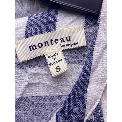 Keywords: Monteau Los Angeles, Striped Tank Top, Sleeveless Top, Casual Tank, Blue and White Top, Summer Top, Women's Tank Top, Small Tank Top, Relaxed Fit, Beach Top, Vacation Top, Striped Shirt, Tank Top