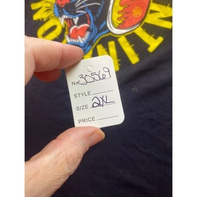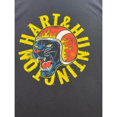 Unleash your inner rebel with this striking graphic tee. A bold panther wearing a vintage-style biker helmet takes center stage, surrounded by eye-catching lettering. The design has a cool, edgy vibe that will turn heads. This tee is perfect for casual outings, concerts, or adding a touch of personality to your everyday style.