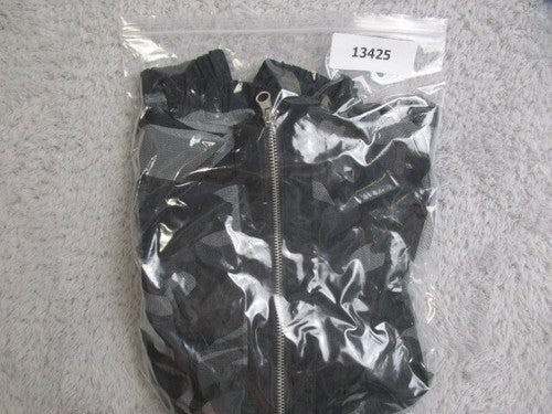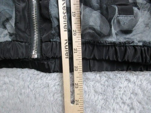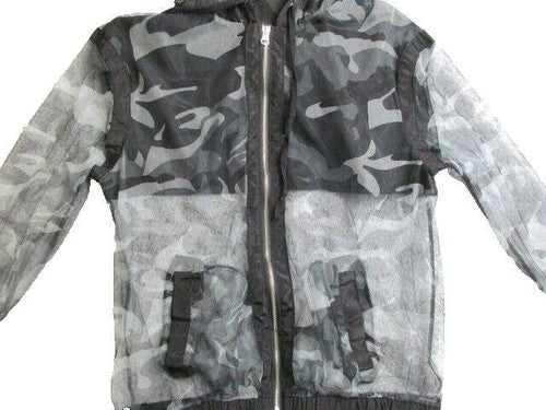 New Look Jacket Womens Medium Black Camouflaged Full Zip Hoodie Sheer Fishnet