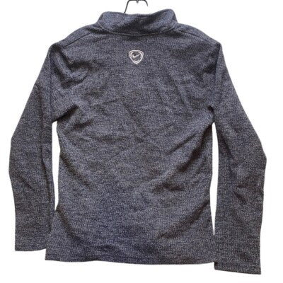Keywords: Nike, pullover, half zip, sweater, athletic, training, top layer, medium, men's, sportswear, workout, running, performance, blue, gray