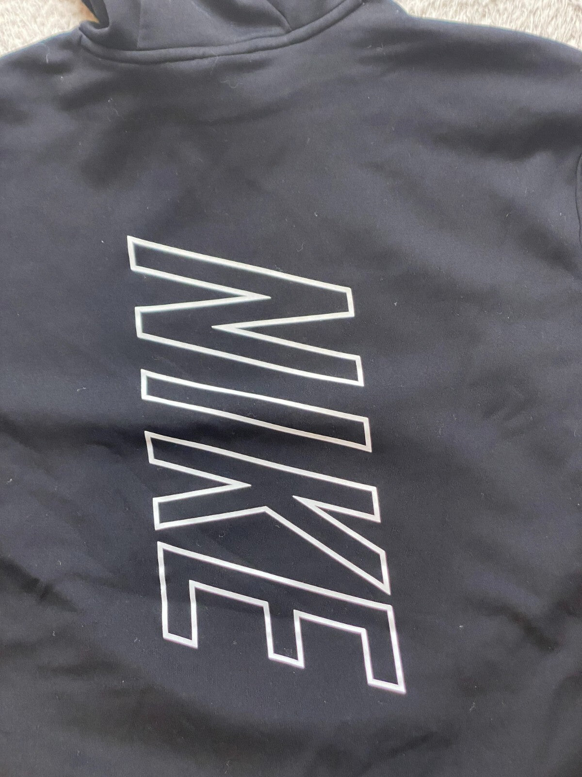 Nike Sweatshirt Adult Small Black Swoosh Center Spellout Hoodie Nylon Mens