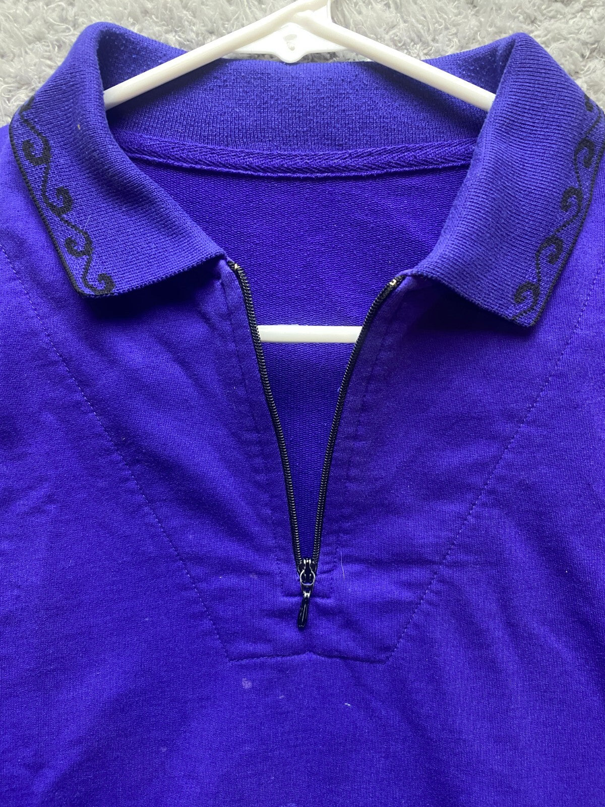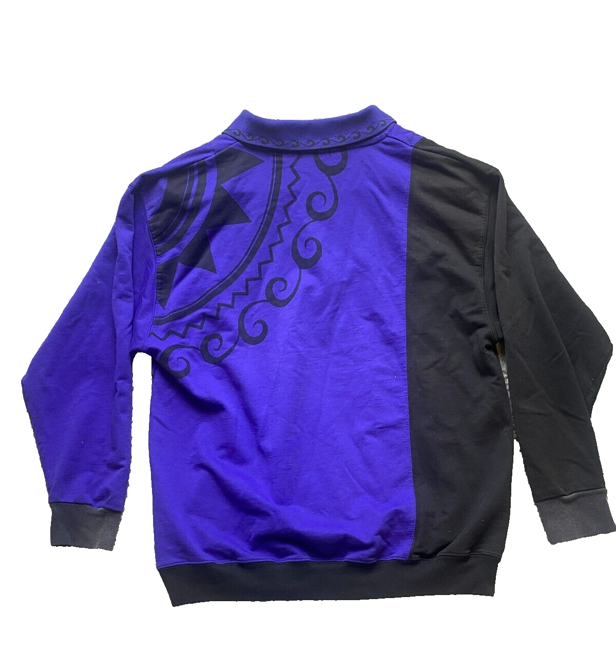 North Coast Sweater Adult Medium Black Purple 1/4 Zip Collared Tattoo Artsy Mens
