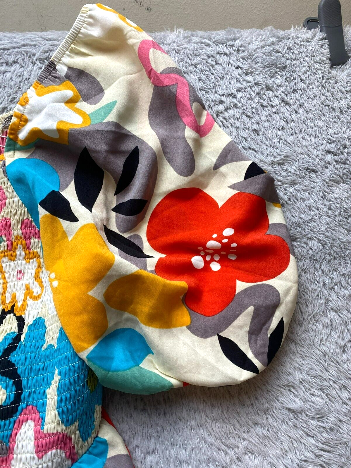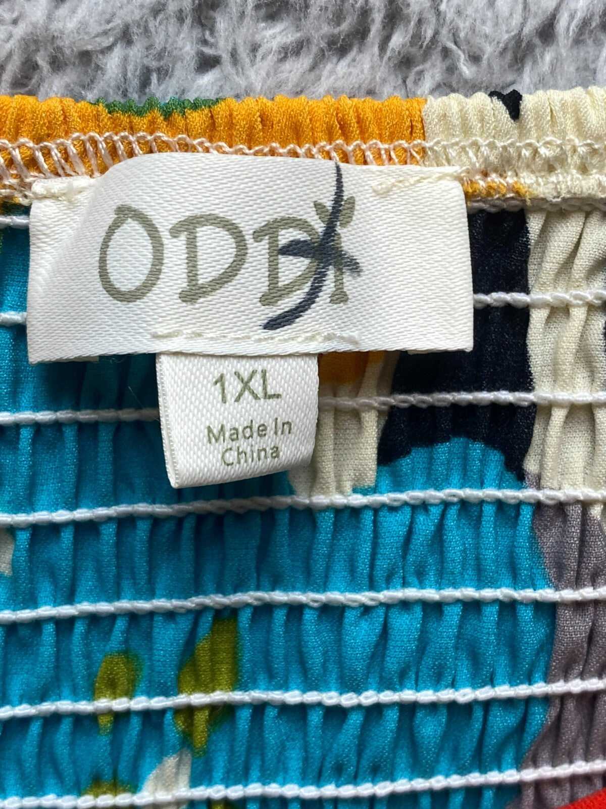 Oddi Dress Womens 1XL Rainbow Smocked Fit Flare Boho Artsy Flower Puff Sleeve