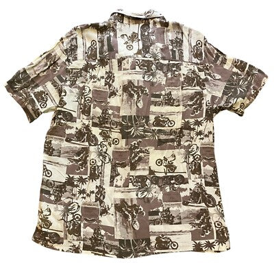 Keywords: Panama Jack, Motorcycle shirt, Button up shirt, Short sleeve shirt, Graphic shirt, Men's shirt, Casual shirt, Beach shirt, Island shirt, Vintage shirt, Rayon shirt, Brown shirt, Beige shirt, Motorcycle club, Maui Hawaii