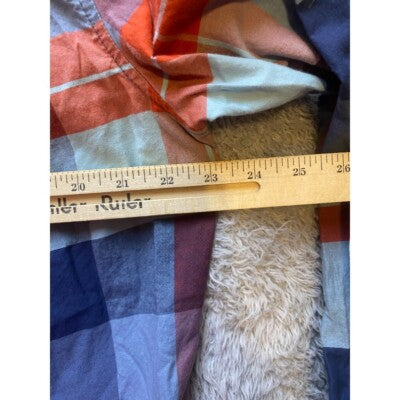 Rustic charm meets modern comfort in this Pendleton plaid shirt. Imagine wrapping yourself in the soft embrace of its cotton blend fabric, the classic plaid pattern in shades of orange, blue, and gray evoking cozy evenings by the fire. The button-down design offers versatile styling options, while the relaxed fit ensures all-day ease. A single chest pocket adds a touch of practicality to this timeless piece. Perfect for casual weekend outings, layering on cool autumn days, or adding a touch of rustic flair to your everyday wardrobe.