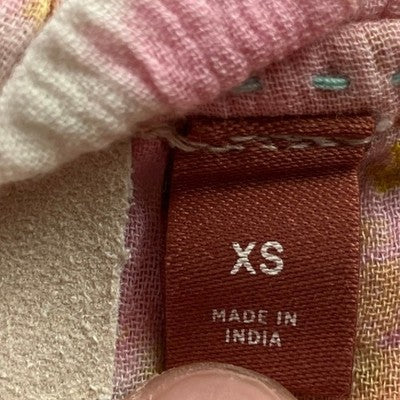 Keywords: Pilcro, Anthropologie, blouse, tie dye, floral, boho, bohemian, cotton, button up, long sleeve, ruffled, XS, extra small, pink, casual top