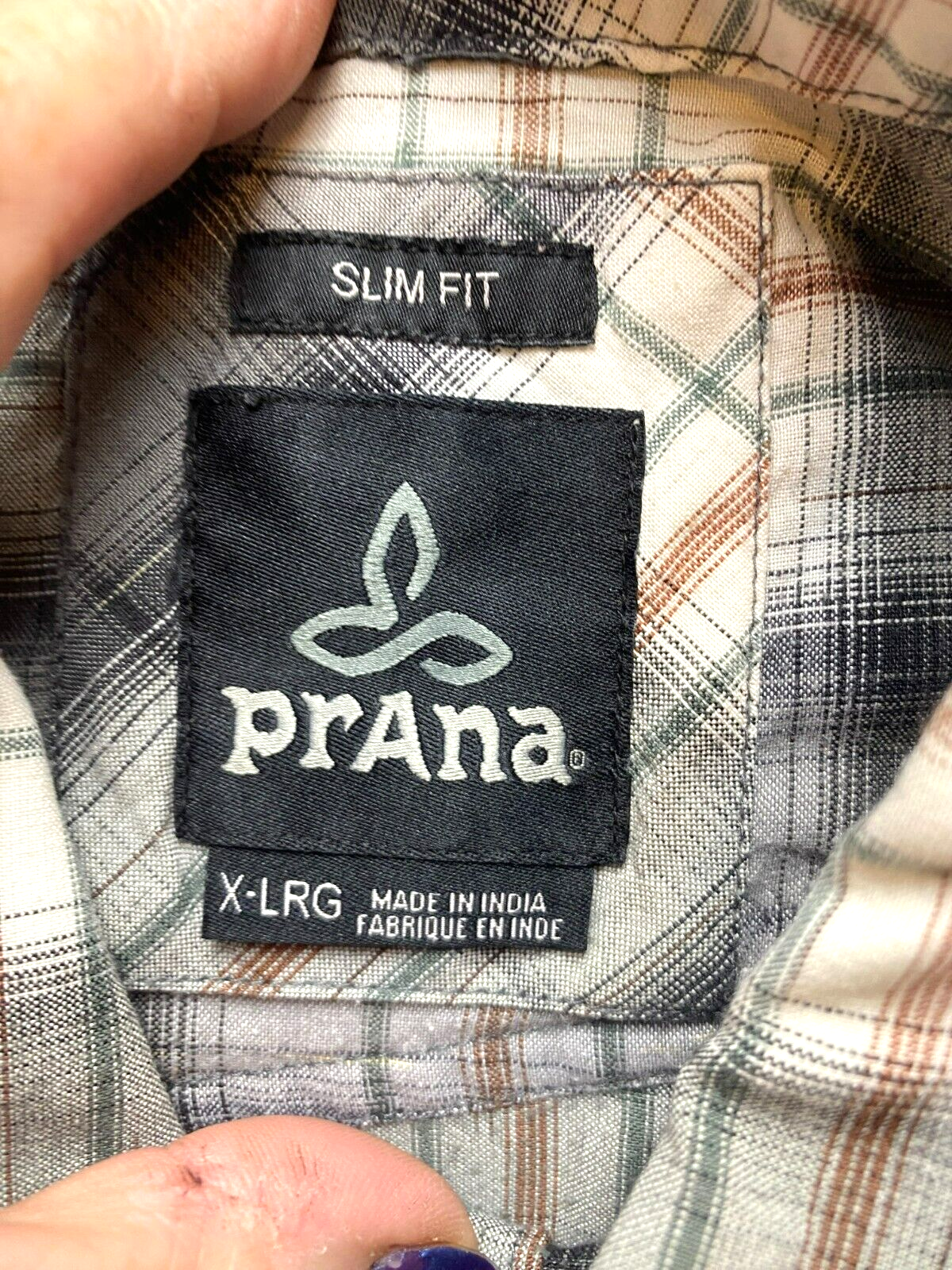 Prana Shirt Adult Extra Large Gray Plaid Slim Fit Organic Button Up Casual Mens