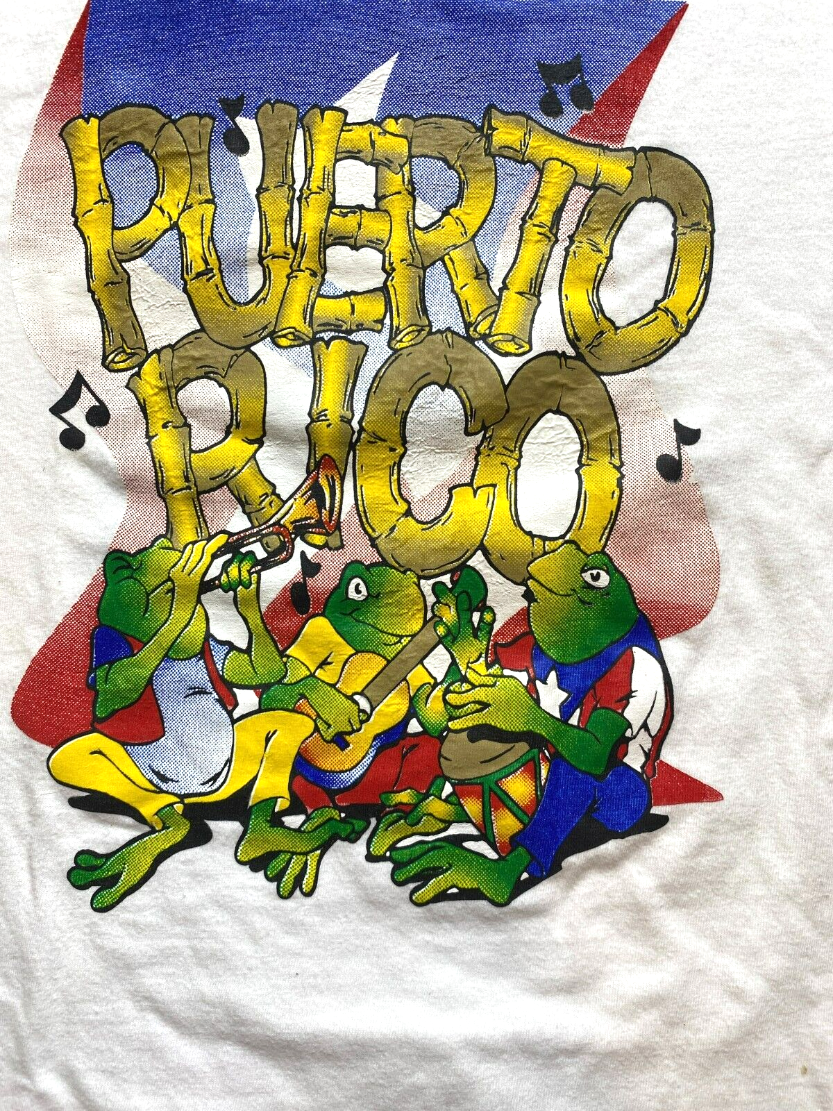 Puerto Rico Shirt Adult Extra Large White Frog Band Musical Instruments Mens